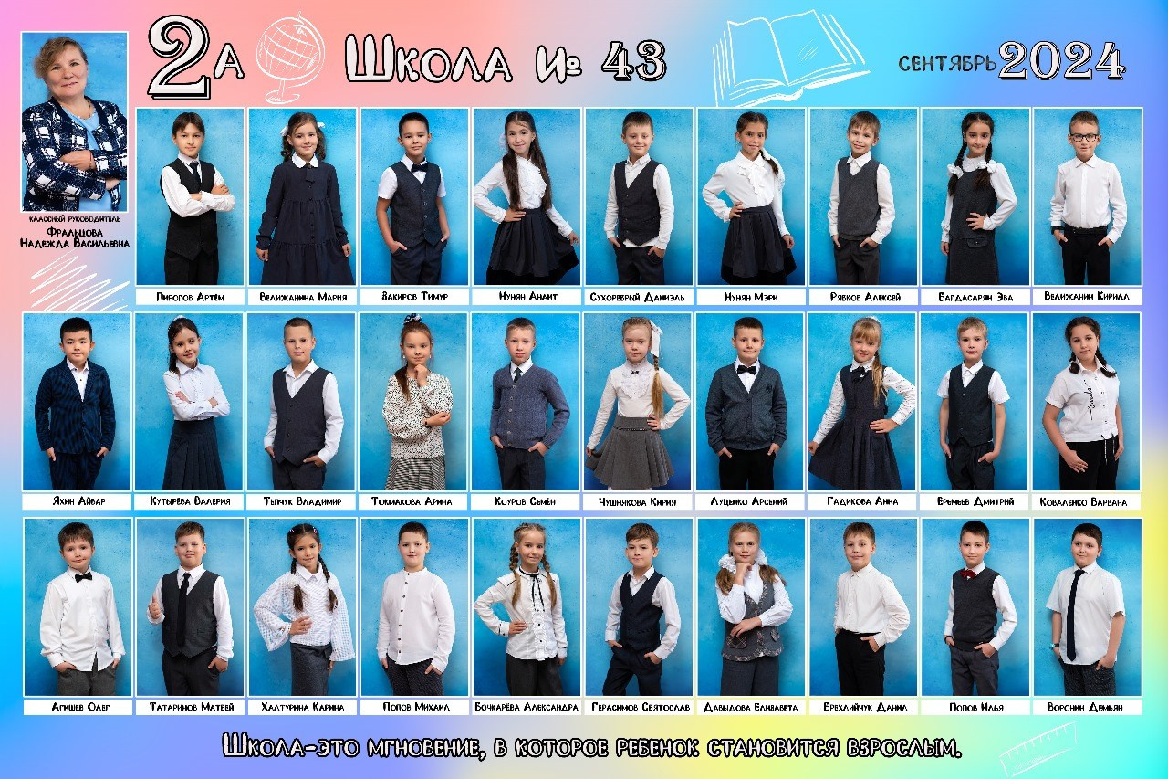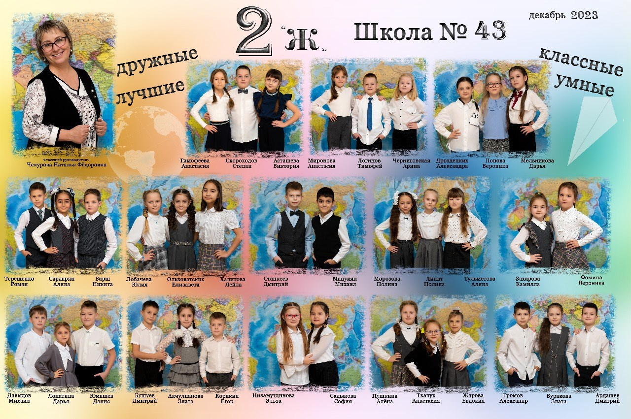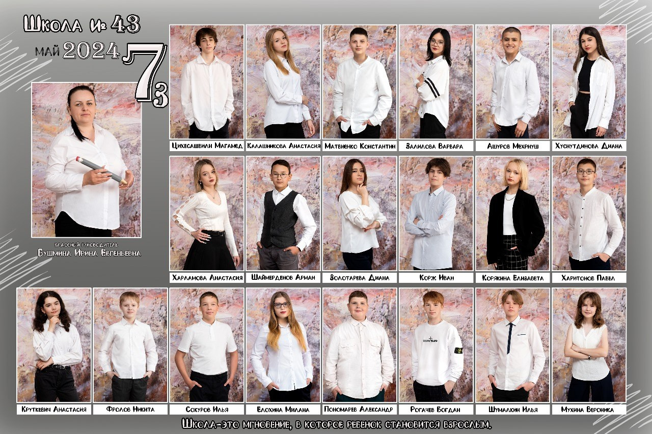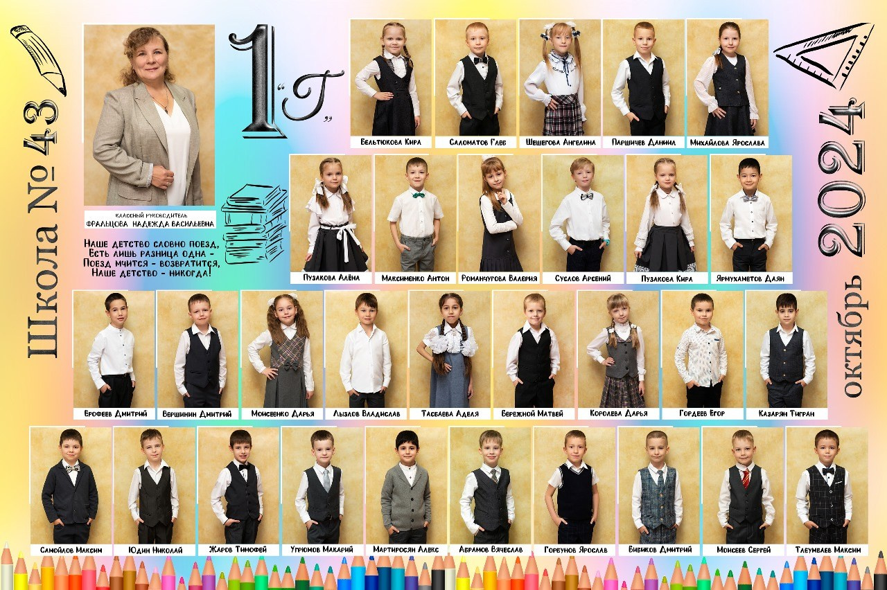 - внутри: общая фотография в виде виньетки (величина виньеток зависит от кол-ва человек), а так же индивидуальная фотография ребенка или фото с друзьями